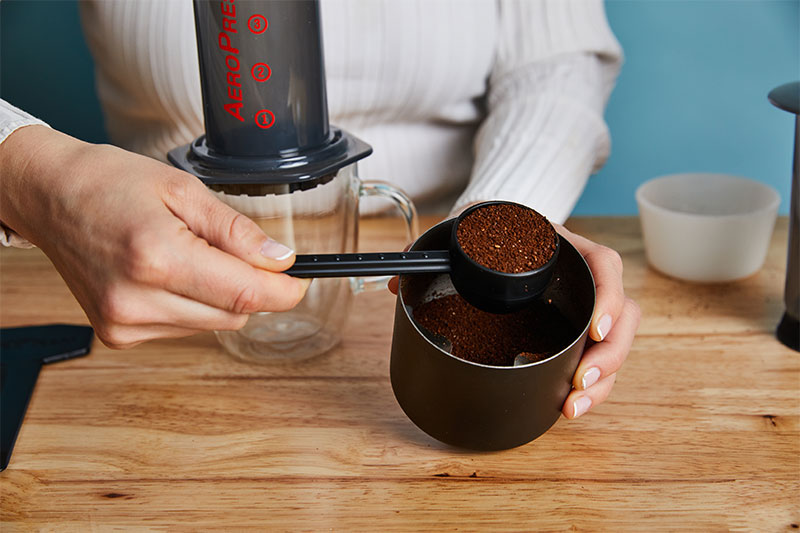 Add your coffee into the AeroPress and begin heating up your water.