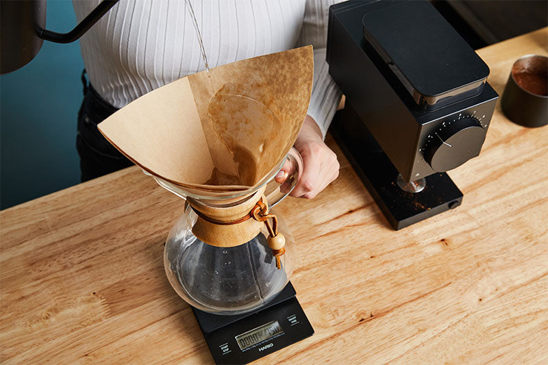 The Chemex is an iconic hourglass-shaped coffee brewer which has achieved a cult following since its design in 1941 due to it being featured in films, on display at the Museum of Modern Art in New York, and just being an all-around great device to brew with.