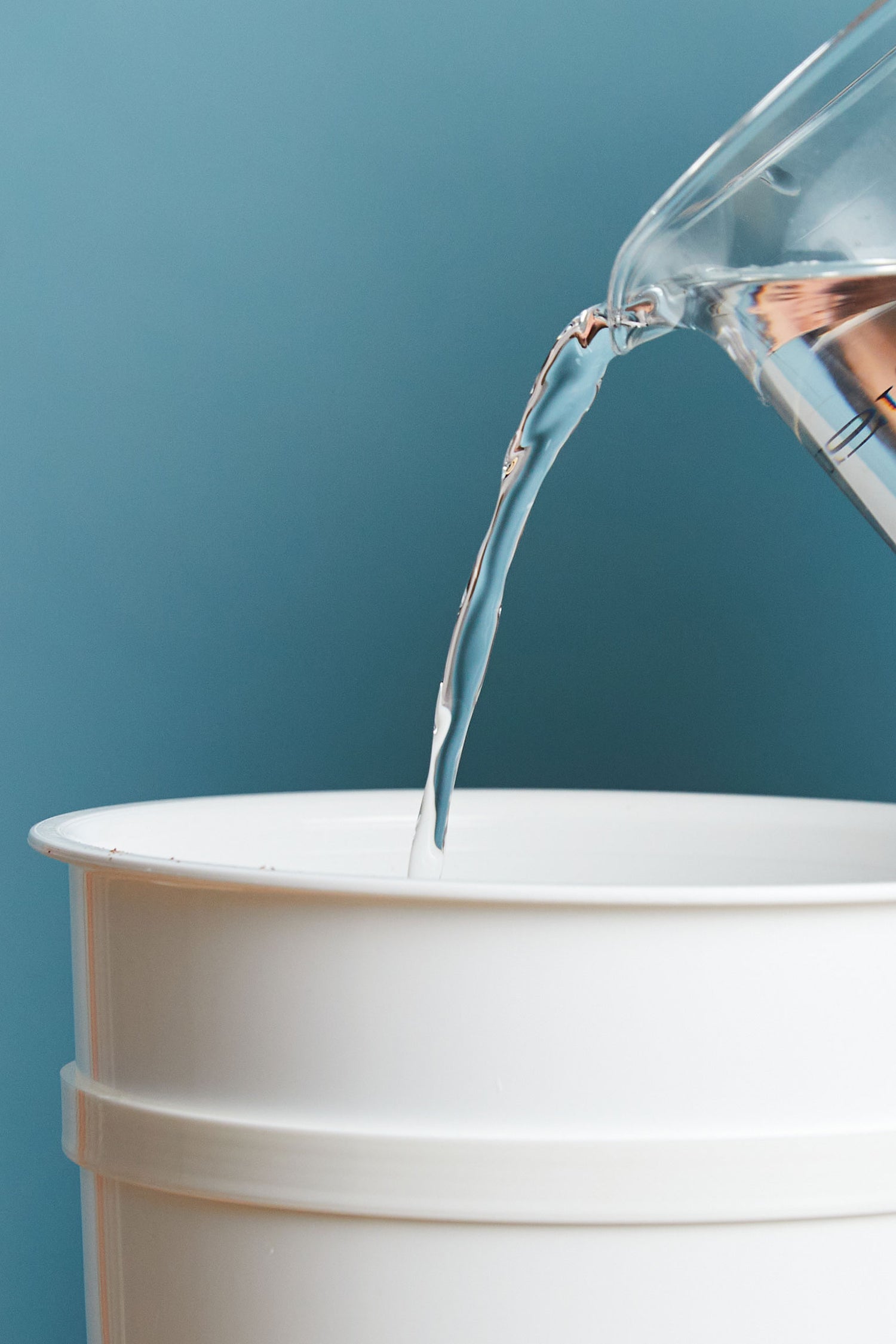 Next, add 64 ounces of good spring water to the Toddy system. There are a few ways of brewing here, some leave the paper filter untied, and this would be an excellent time to use a wooden spoon to ensure all the coffee and water are mixed properly. The downside of leaving the paper filter untied is that you may get coffee grounds seeping over the outside and potentially plugging up your felt filter.