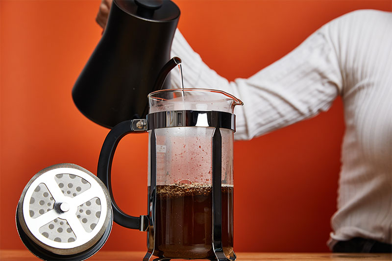 quick splash of hot water and then dump the water out to help heat the device thoroughly. This helps improve extraction as you want to avoid brewing into a cool or cold French Press.