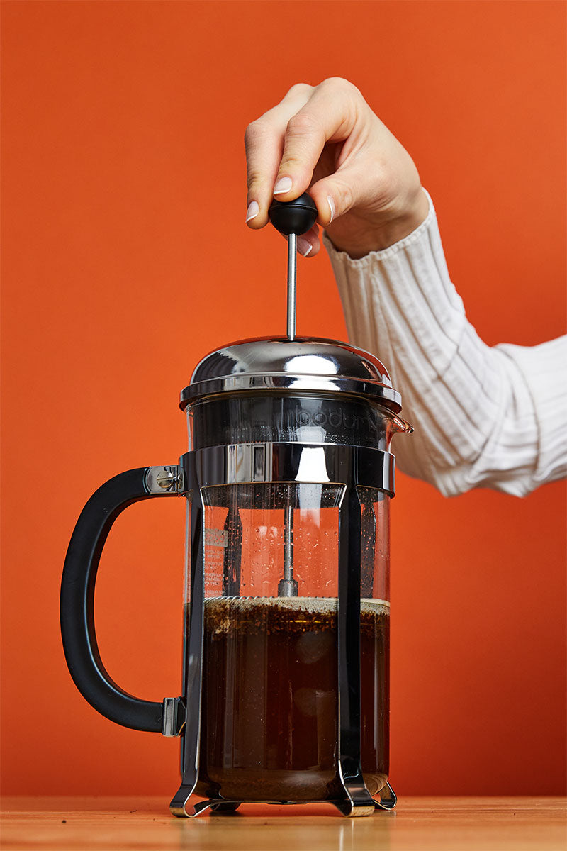 It is important to note that plunging slowly will help prevent sediment from pushing through the mesh filter and ending up in your cup. Regardless, the French Press will be slightly muddy, and that is okay!