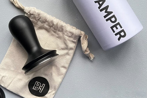 Designed specifically for bar work, the Barista Hustle signature tamper offers a lightweight yet well-balanced design that ensures durability. Inevitable drops and dings are accounted for with a base that is both inexpensive and easy to replace. The tamper body, crafted from black anodized aluminum, features a slim and smooth profile that is comfortable to hold, with just the right amount of texture to provide a secure grip even with wet hands.