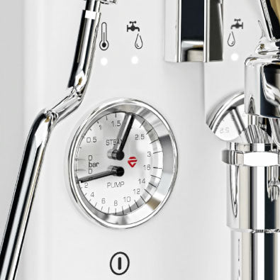 The LELIT Electronic Control System (LCC) on Lelit Espresso Machines offers versatility with adjustable extraction profiles, pre-infusion settings, and individual boiler temperature controls. The machine also features an Economy mode, which turns off the steam boiler to save energy, while maintaining the desired temperature in the coffee boiler.
