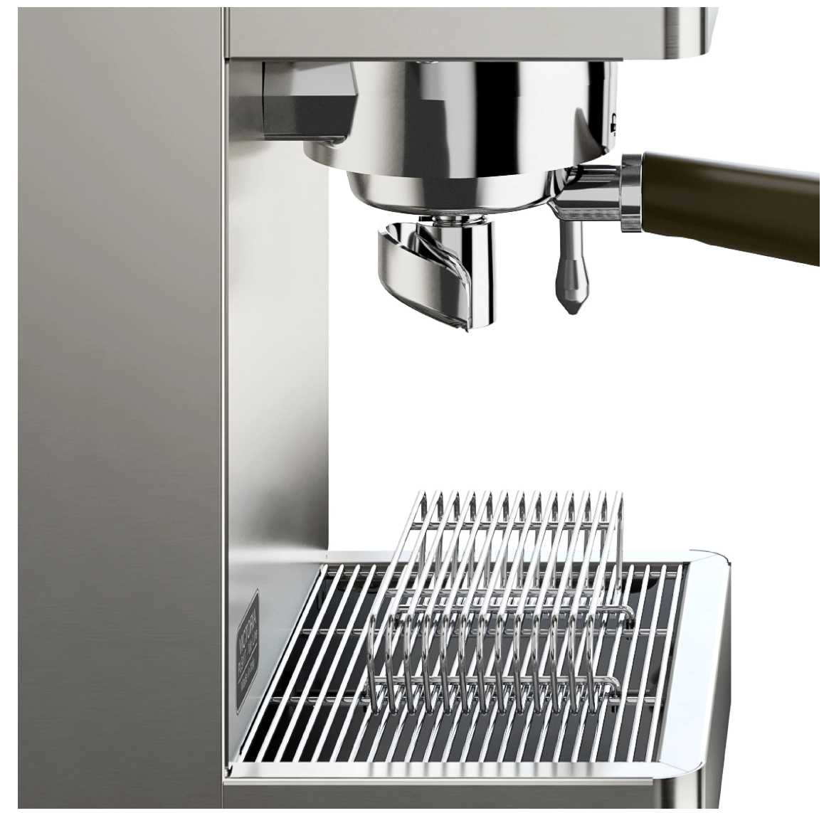 The E-61 group is a feature that provides consistency and enhances the flavor of the espresso. It circulates hot water through the boiler and group head continuously, maintaining the appropriate brew temperature range at the group head. Additionally, its automatic pre-infusion function saturates the coffee in the group head when you start extraction, leading to a more evenly extracted and refined flavor profile. The best part is that this feature operates on its own, so it does not require any special actions from the user to benefit from its performance. This is the result of good design.